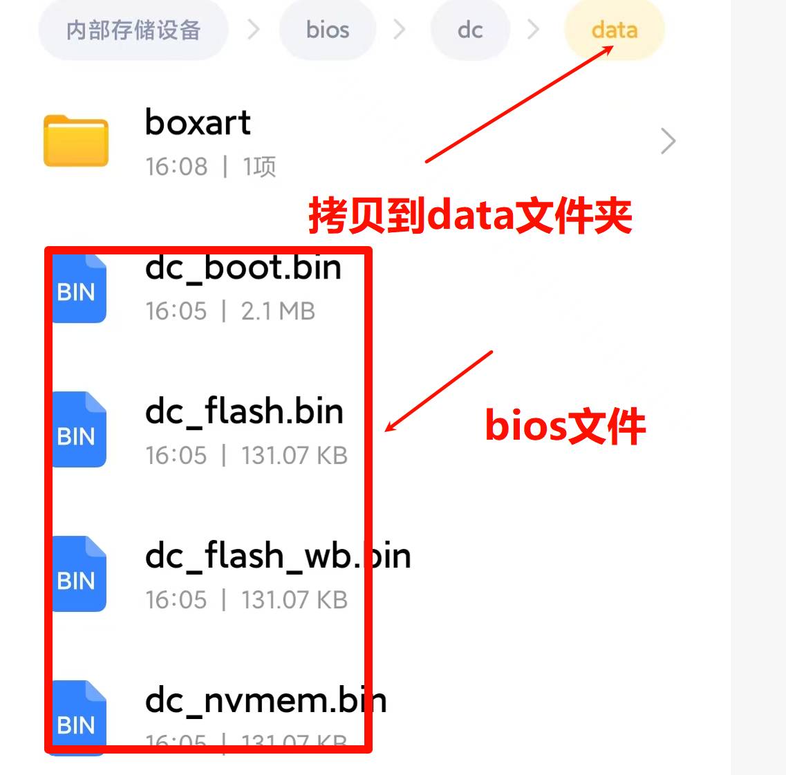 4、进入BIOS文件夹里的data文件夹,把bios文件拷贝到里面,bios文件可在网盘里下载